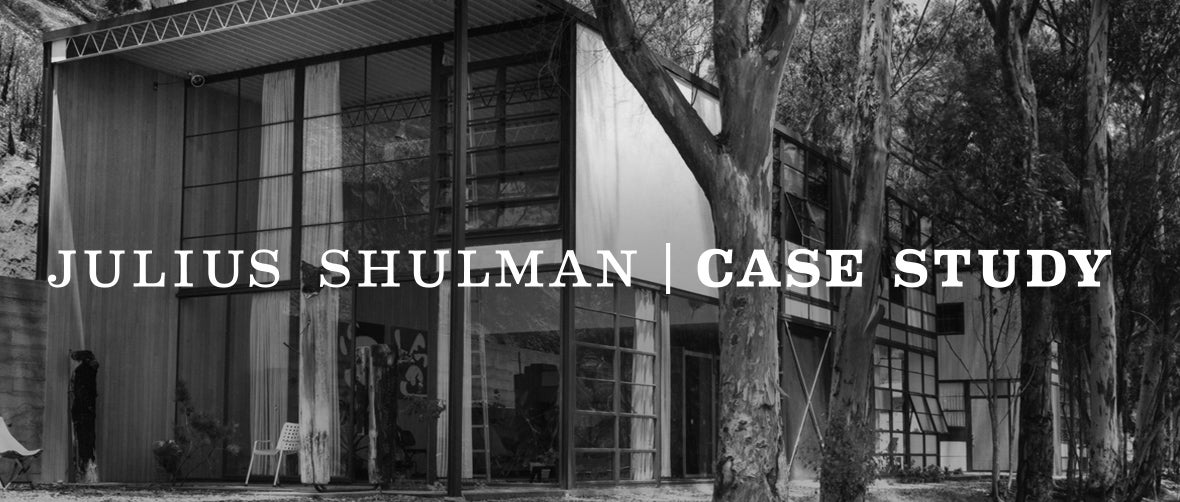 Born in Connecticut, Shulman moved to California in the 1920s, later studying at University of California, Los Angeles, and University of California, Berkeley. Shulman worked full-time as a commercial architectural photographer from 1936 until the late 1980s, then intermittently until the early 2000s. His work has appeared in countless publications and exhibitions, and has come to be valued both as an archive of historical importance, and for its place in the art world. Shulman held three honorary doctorates from various United States universities, and in 1998, he received a lifetime achievement award from the International Center for Photography in New York. In 2005, Shulman’s work was featured at the Getty Research Institute in a retrospective exhibition corresponding with the institute’s acquisition of his archive, which contains over 260,000 negatives, transparencies, and prints.