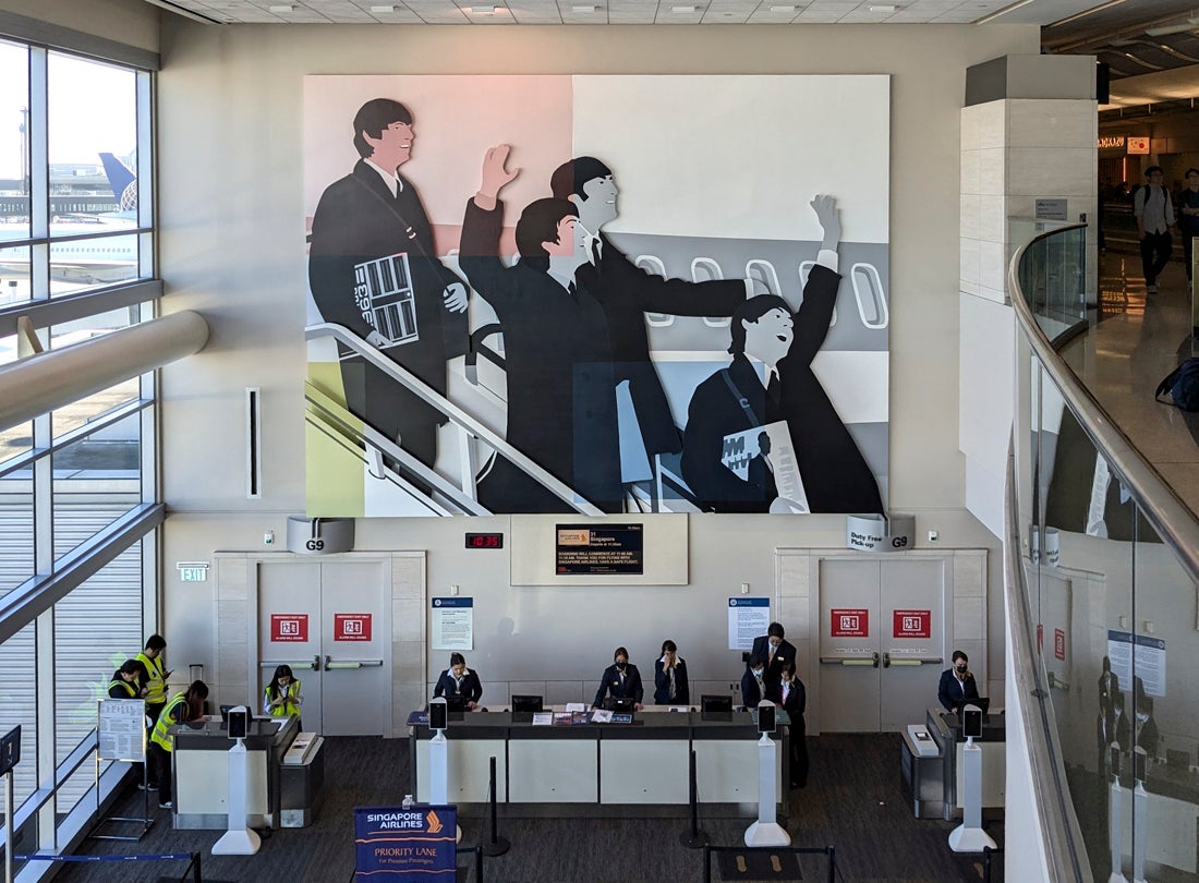 In this diorama-like construction, The Beatles are shown exiting an airplane on their first US tour in 1964. The colored rectangles superimposed onto this scene are based on Piet Mondrian’s Composition C (1935). By combining an archival image with an abstract composition, this work attempts to free the photograph of its documentary status while adding a narrative to a set of seemingly static primary color fields. Mondrian Meets The Beatles also imagines a meeting that never took place between a painter and music band, each of which revolutionized their respective fields of culture.