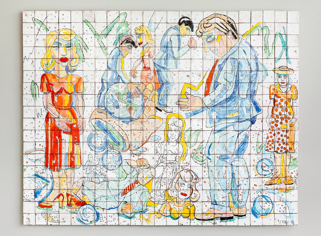 Viola Frey has created a vocabulary of figures and objects that form a personal mythology. For instance, the suited businessman is a symbol of mainstream respectability, often contrasted with bold, vividly dressed women. The grandmother figure is a maternal icon of power inspired by the “take charge” matriarchs in her hometown during World War II. The workman’s glove holds the world in its palm - a statement about the value of work and creativity.
