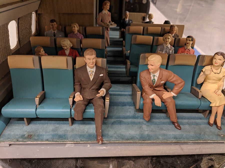I worked with conservation assistant Allison Kelley on the completion of a large project to clean and repair the largest cutaway model in the museum’s collection. The cutaway model represents a United Air Lines Douglas DC-8. It was made in the late 1950s by the prominent model making firm Pacific Miniatures for use in United Air Lines’ marketing campaign for its new DC-8 jet airliner.