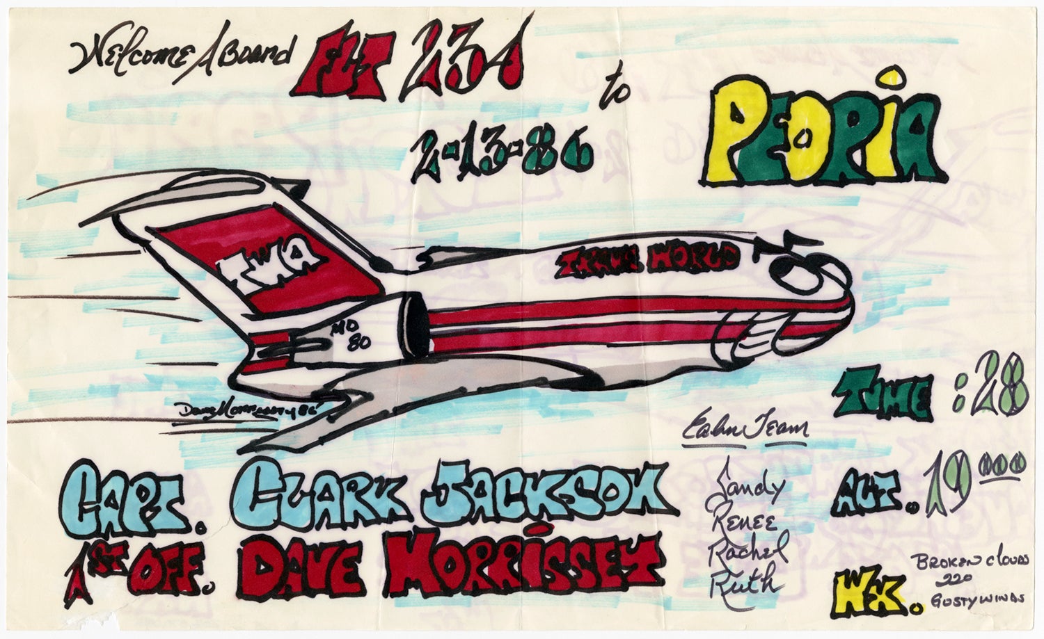 Trans World Airlines (TWA) McDonnell Douglas MD-80 flight plan illustrated by First Officer J. David Morrissey 1986
