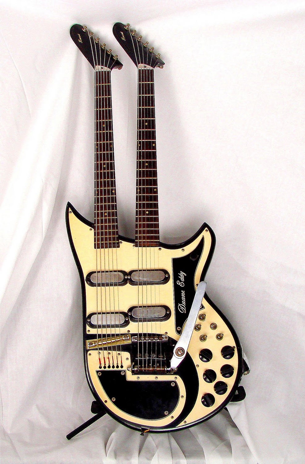 Registration images of Danelectro Guitarlin previously owned by Link Wray and Howard double-neck previously owned by Duane Eddy