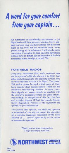 Flight information packet for Northwest Orient Airlines, comprised of: