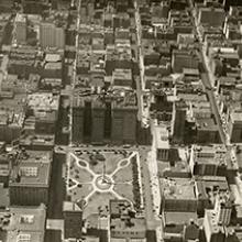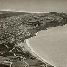 By the 1920s, Stanley Page merged his love of flying with another interest that of glass plate photography. Page had a small flying boat designed around one of his own aero engines and flew extensively around the Bay Area, photographing points of interest. He was often joined on these flights by fellow flying enthusiast Jacob Struble. Page’s images depict San Francisco Bay before its iconic bridges were built. Some of the locations he photographed, like Sutro Baths, have been lost to history, but many, like San Francisco’s famed Union Square and Cliff House, are still recognizable today. Page later donated the engine used in his airplane to the Smithsonian Air and Space Museum. The San Francisco Airport Commission Library and Louis A. Turpen Aviation Museum holds an extensive collection of Stanley Page’s photography, which was generously donated by Charles Page in 2010. This exhibition comprises a selection of images drawn from original prints and glass plate negatives.