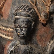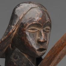 Musicians play instruments singularly, in pairs, or in larger ensembles and frequently incorporate vocals. Many African languages are tonal—a word’s meaning depends upon the tone or pitch in which it is communicated. As a result, a number of instruments, such as drums and xylophones, mimic speech through their tone and rhythm. The musical instruments on view are from the Fowler Museum at UCLA from the West and Central African countries of Liberia, Republic of Côte d’Ivoire, Nigeria, Cameroon, Gabon, and Democratic Republic of the Congo.