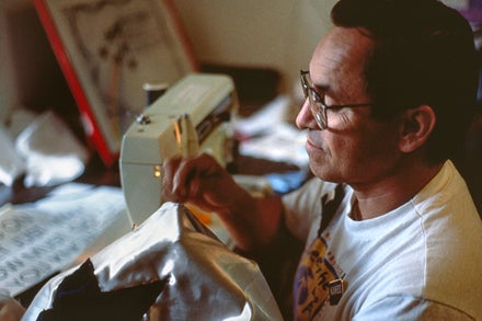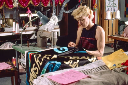 Gert McMullin sewing at the NAMES Project workshop 1996