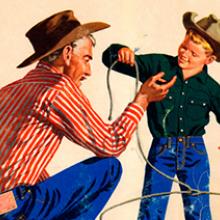 Within a decade, colorful flyers with eye-catching graphics were in the hands of company salesmen and given to owners of small general stores all over the American West. Art Nouveau influences can be seen in the covers of the company’s catalogs, first printed in 1890. And as the Levi’s brand became more associated with the romance of the cowboy and the West, illustrations inspired by Western artists, such as Maynard Dixon, Frederic Remington, and others appeared in magazines, newspapers, and in stores as counter cards.Classic American illustration is presented in many forms, but is always recognizable. Bold colors, finely detailed drawings, and a nod to popular culture are the hallmarks of the design aesthetic adopted by fine artists, commercial illustrators, and designers. San Francisco’s own Levi Strauss & Co. took this to heart when it created and patented the first blue jeans in San Francisco in 1873.