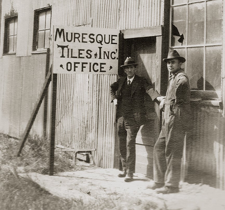 William Flynn Muir (left) at his Muresque factory c. 1928