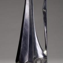 Glasgow-born Christopher Dresser was one of the first modernist designers. From his observations as a professional botanist, Dresser concluded that beauty was derived from simplicity of form and clarity of function. Dresser's forward-thinking design principles are reflected in his bowl crafted from a single sheet of textured, electroplated silver with corners turned up and rolled inward (1890). His work was an abrupt departure from the highly decorative silver made in revivalist styles. Although he worked in the nineteenth century, Dresser can arguably be called the first designer of the twentieth century, and his influence spans generations and continents. A Century of Silver and Metalwork from the Margo Grant Walsh Collection presents a broad range of well-designed, functional objects that reveal their essence through their form and their beauty.