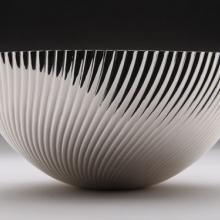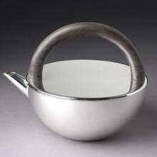 Italian designers had a profound influence on silver and metalwork in the late twentieth century. Architect-designer teams working at Milan's San Lorenzo shop included Franco Albini and Franca Helg, whose spiral bowl was decorated in the traditional technique of repoussé—hammering by hand from the reverse side. Gabriele De Vecchi's hemispherical teapot was designed in 1985 for an experimental line that explored the mirror-like quality of undecorated silver surfaces on broken or bisected forms.
