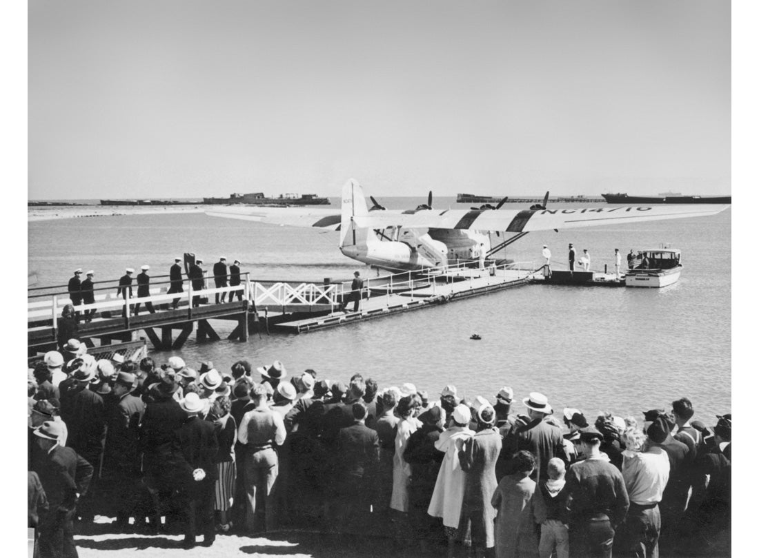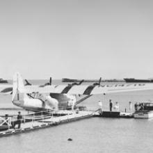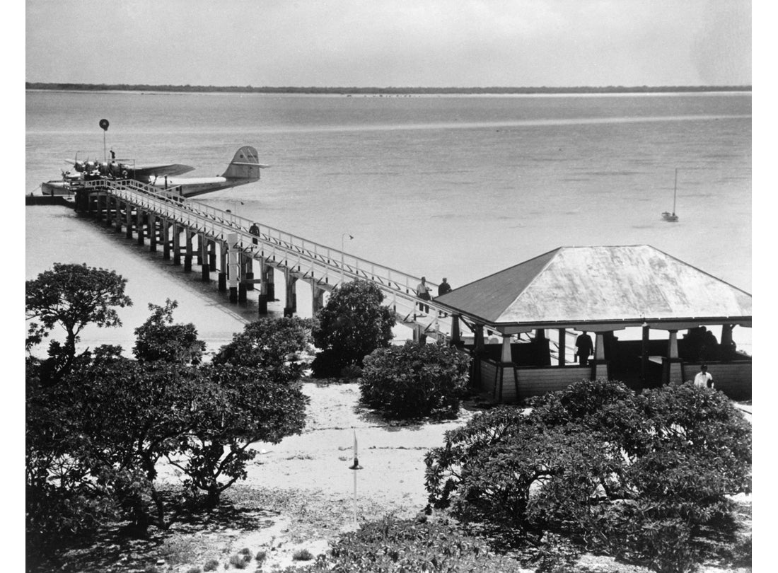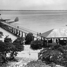 Martin M-130 at passenger dock, Wake Island c. 1937 photograph