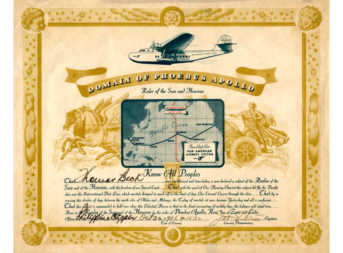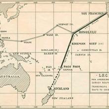 l-r, Radio Officer W.T. Jarboe Jr., Junior Officer Harry R. Canaday, First Officer R.O.D. Sullivan, Captain Edwin C. Musick, Navigator Fred J. Noonan, Engineer Officer Victor A. Wright