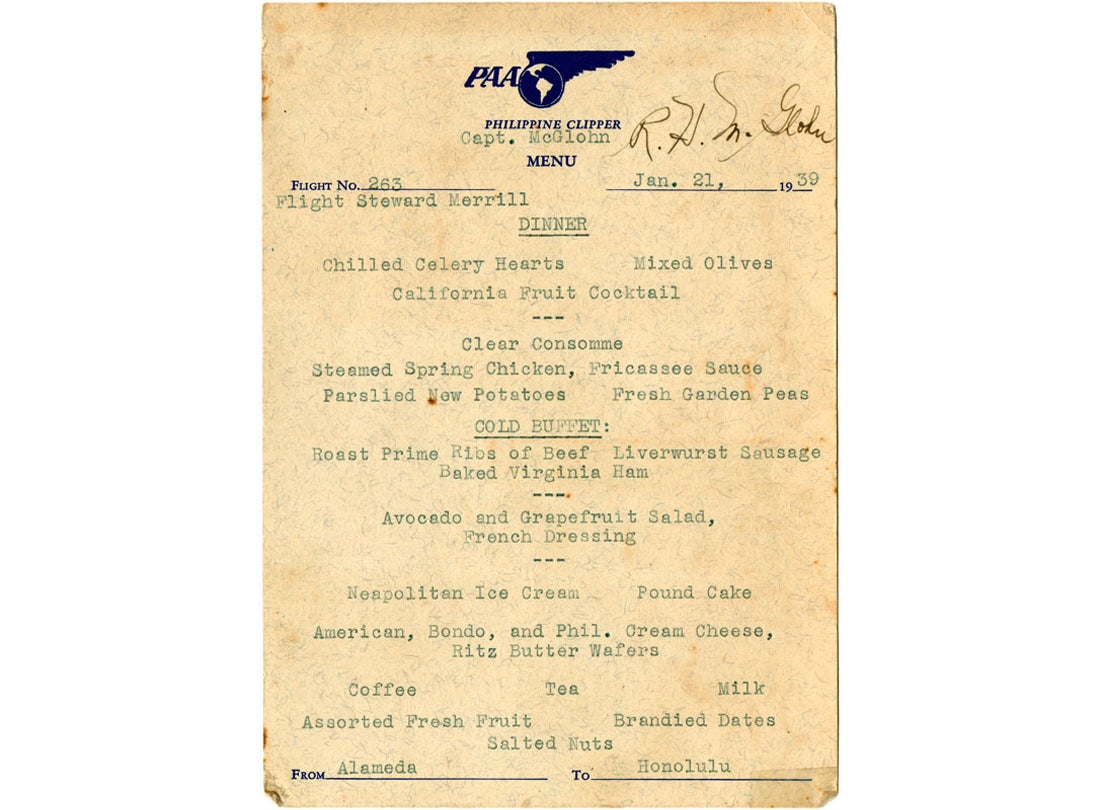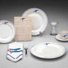 Pan American Airways meal service 1930s ceramic, steel, glass, linen, ink on paper