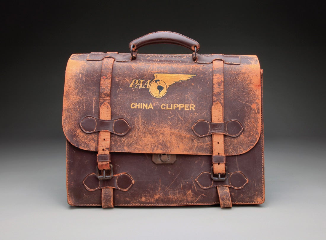 Pan American Airways China Clipper flight officer briefcase c. 1935 leather, metal