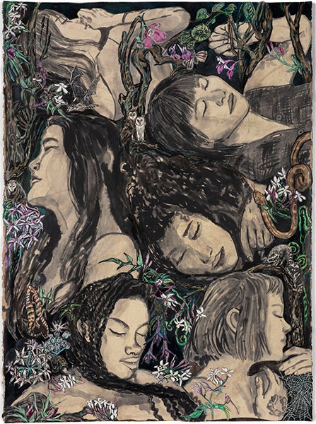 Bay Area artist and educator Libby Black invited a group of undergraduate and graduate students from San Francisco State University’s School of Art to articulate their unique perspectives on home. Artists from a wide range of cultures and gender identities used a variety of mediums and techniques to examine their search to find a sense of belonging and safety. Watercolor, ink, acrylic paint, colored pencil, gouache, cannabis ink, and gold leaf were among the materials chosen by the artists to address this theme.