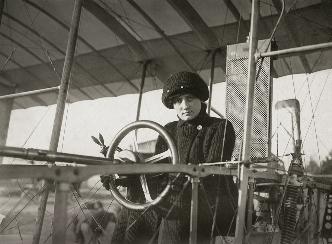 Before becoming an aviator, the Belgian-born Hélène Dutrieu was a world-champion cyclist, an automobile racer, a stunt performer, and a comedic actor. She first flew in early 1910 and earned her pilot’s license from the Aéro-Club de Belgique (Aero Club of Belgium) the same year, becoming only the fourth woman aviator to be licensed. Known as the “Girl Hawk,” Dutrieu was the first winner of the Coupe Femina (Femina Cup) in 1910 and won it again the following year. In 1911, she won the Coppa del Re (King's Cup) race in Florence, Italy, besting fourteen other male aviators.