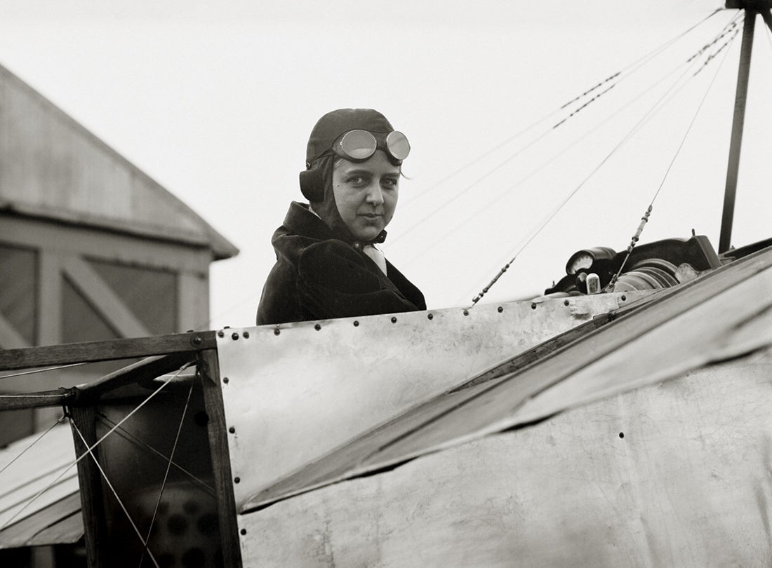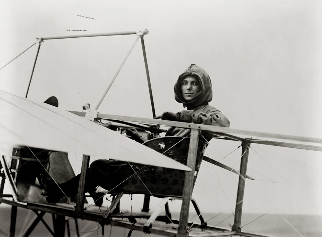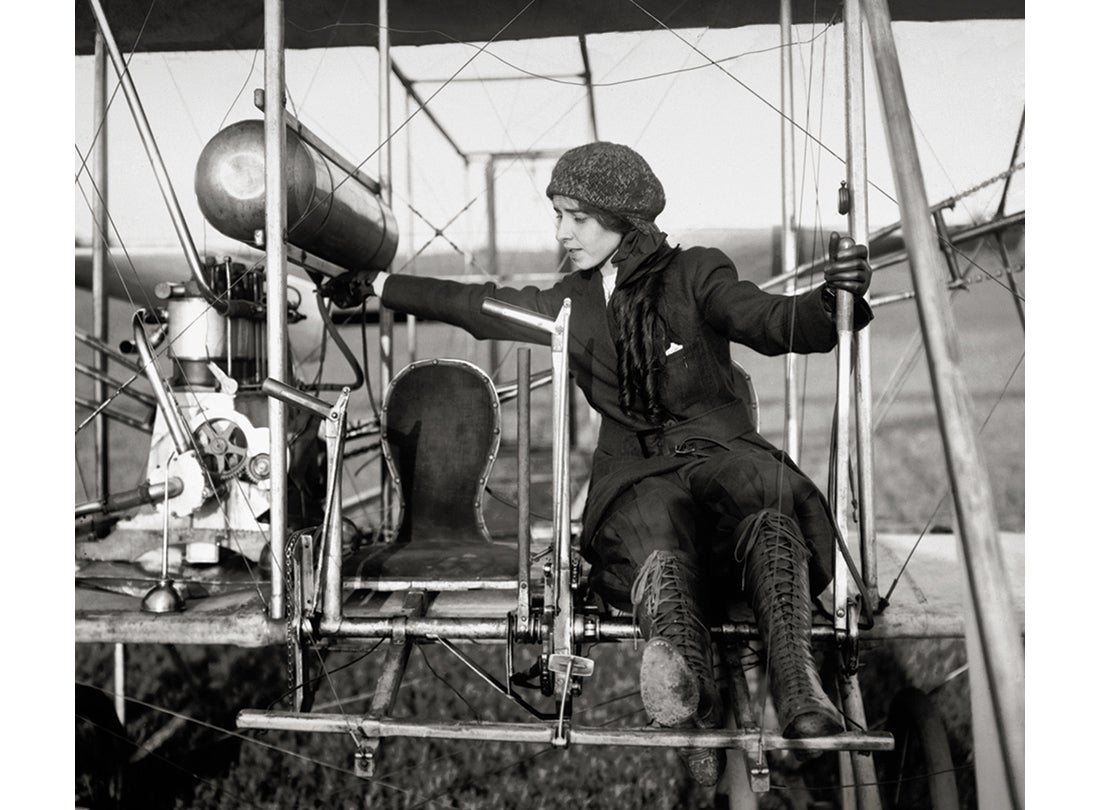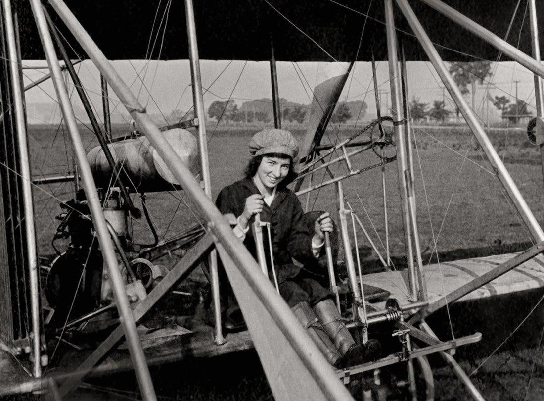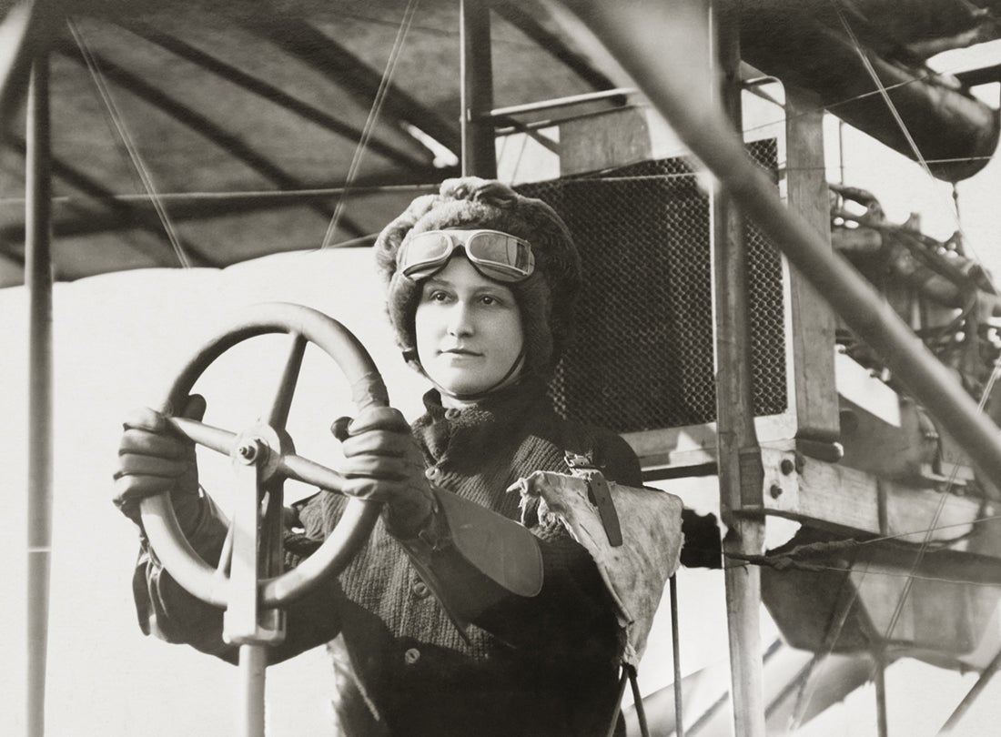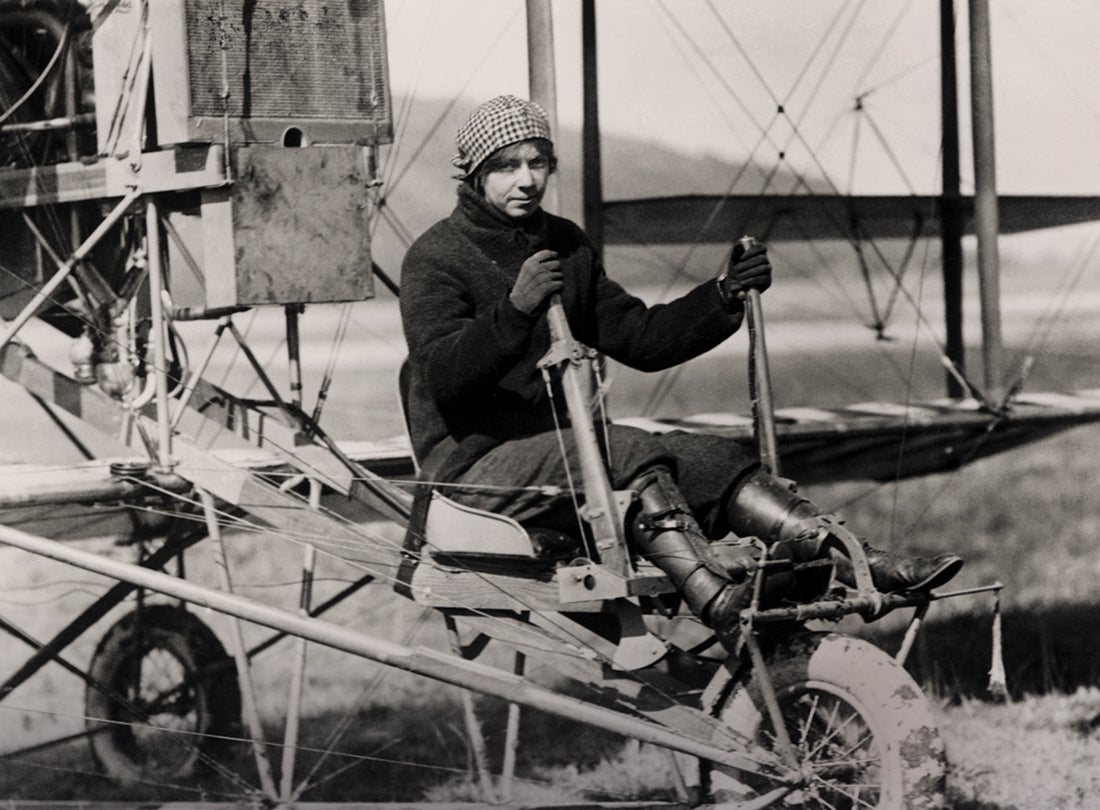 Before becoming an aviator, Blanche Scott proved her automotive and mechanical skills by becoming the first woman to drive across the continent from New York to San Francisco in 1910. This feat brought her to the attention of Glenn H. Curtiss (1878–1930), who agreed to provide her with flying lessons. Curtiss fitted a limiter on her plane’s throttle to prevent flight during her training. Nonetheless, Scott became one of the first American women to fly solo in early September 1910 when either a gust of wind or movement of the limiter resulted in her ascent for a brief flight at an altitude of forty feet before she executed a gentle landing. Often billed as “the Flying Tomboy,” Scott became a professional aviator later the same year and was the first woman in America to perform at air meets. A highly skilled aviator and stunt pilot, Scott toured as a star performer with several exhibition teams. She also flew for Glenn L. Martin (1886–1955) as a test pilot.