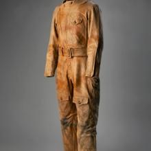 The invention of the airplane in 1903 was followed by a specialized line of equipment designed to meet the needs of its operator and new master of the air—the aviator. From lying prone, to sitting upright in a rudimentary seat amid open brace-work, to a position behind a partial wall, it was many years until the pilot station was fully enclosed within the fuselage of an aircraft. As airplanes flew faster and farther, exposure to the elements became an increasingly acute part of the pilot experience. Extremes in wind velocity and temperature were primary challenges to the physical demands of operating early aircraft. Protective clothing was developed to mitigate these harsh conditions, and aviator equipment was marketed to a growing number of private, commercial, and military flyers at home and abroad. Head coverings, eyewear, facemasks, jackets, pants, one-piece coverall suits, gloves, and boots were all designed to accommodate the human side of the flying equation. Such full-body gear became standard on pilots' checklists, and much of it remained in use up to and during the World War II period of the 1940s.