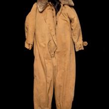 The one-piece flying suit became standard issue for pilots and aviators in military service. It provided a simplified and comfortable style of dress and left nothing to come un-tucked. Such suits featured oversized chest and leg pockets large enough to accommodate a flight chart. With overlapping flaps at the openings and a generous mid-waist belt for a snug fit, the one-piece flying suit was very effective at repelling the elements.