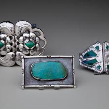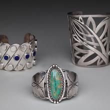 Successful design provides the great diversity of forms in nearly every object that surrounds us— from the clothes we wear and the cars we drive, to the buildings we inhabit and the furniture we use. The Margo Grant Walsh Collection of silver and metalwork demonstrates the tremendous artistry employed in the design and craftsmanship of functional housewares and jewelry. Bracelets, brooches, bowls, serving sets, and salt and pepper casters are among the objects represented in nearly every design style from the late nineteenth century to the present. They reveal artists working in the style of their period, borrowing from earlier traditions, and pioneering new styles of their own. Viewed together, these well-designed objects reflect the unity of function and beauty that comes from all corners of the world and spans several generations of artists.