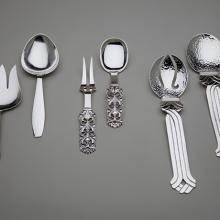 From candlesticks to teapots, and from flatware to necklaces, a tremendous range of form and decoration is found in silver and metalwork from the dawn of modern design in the late nineteenth century to the present. These selections from the Margo Grant Walsh Collection demonstrate that talented designers and craftspeople are not hindered but inspired by the parameters of producing forms both beautiful and useful. They remind us that great design comes in a variety of forms, and they support the assertion made by playwright and poet Oscar Wilde at the turn of the twentieth century—"All beautiful things belong to