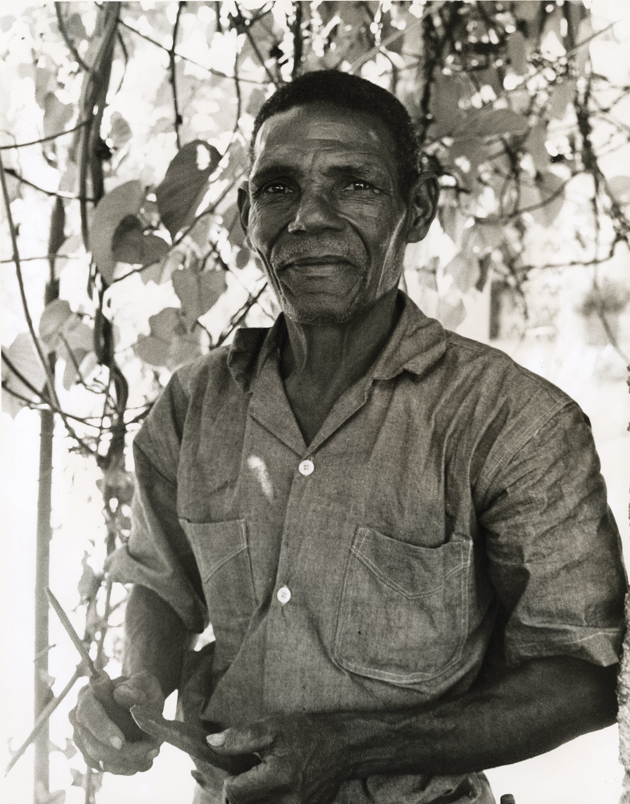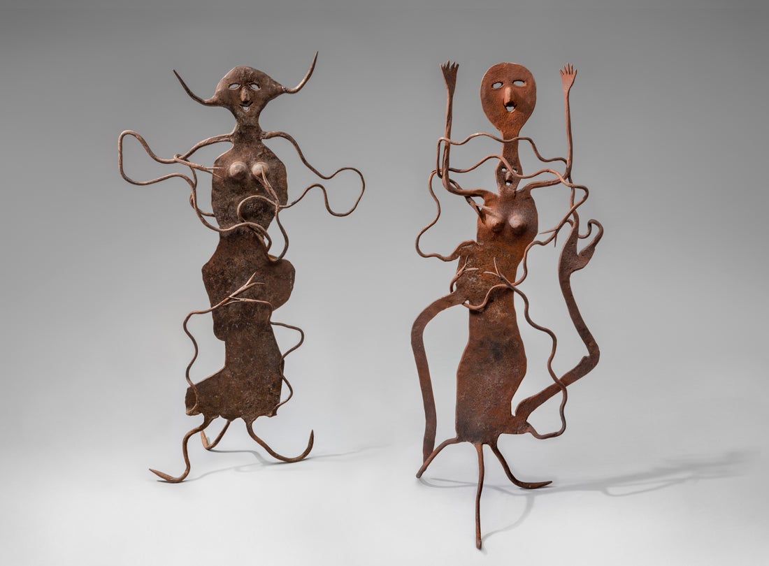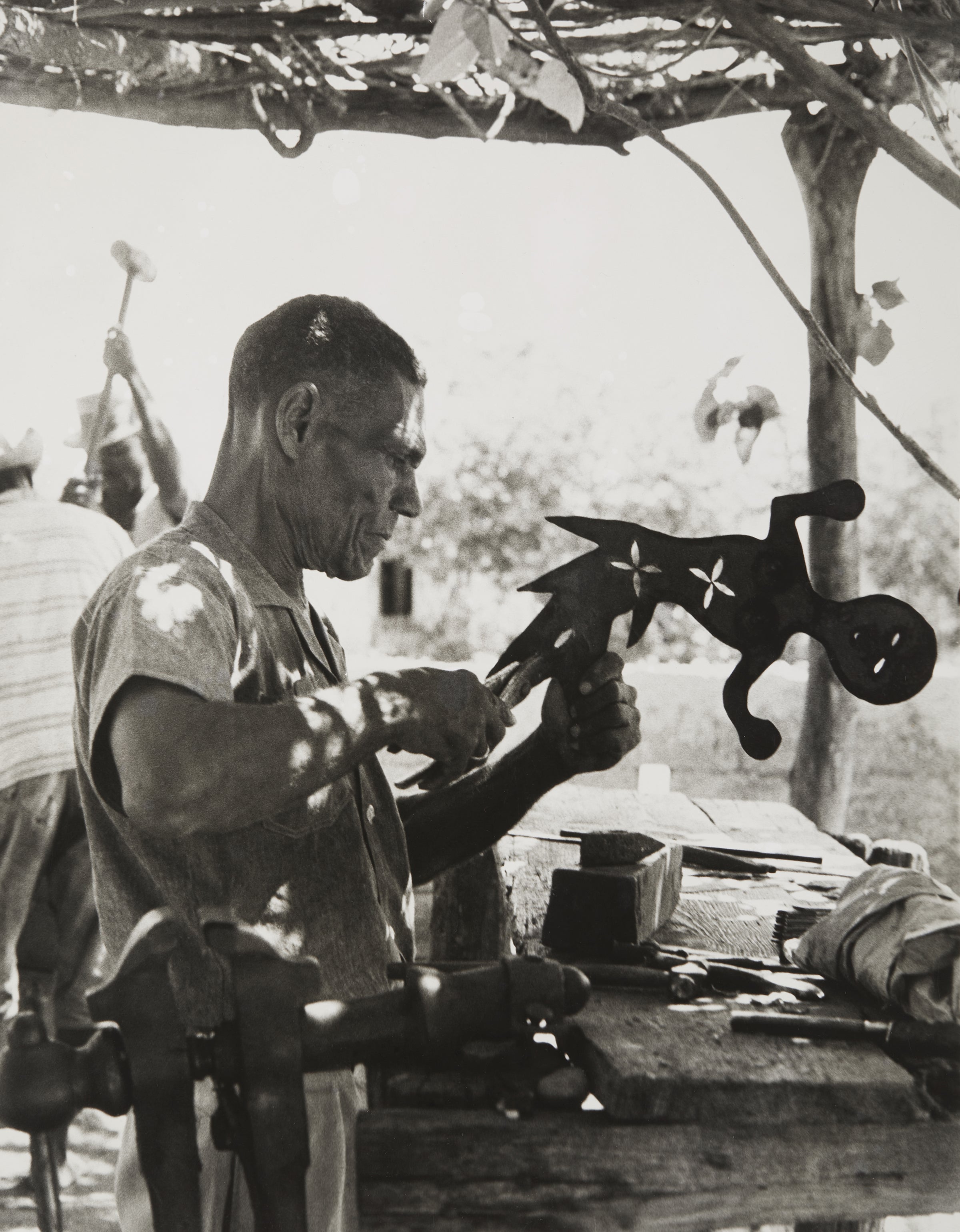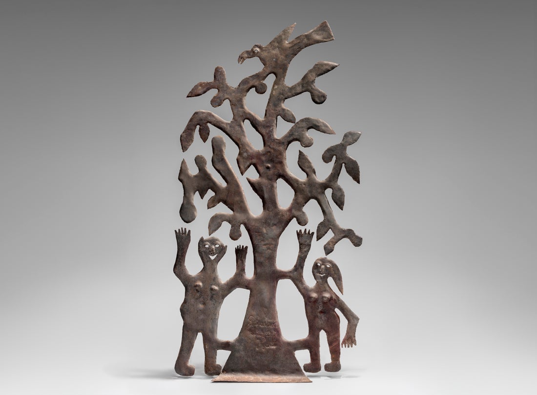 Georges Liautaud (1899–1991) worked as a blacksmith for several years repairing railways. During the 1940s, he opened a forge in his hometown of Croix-des-Bouquets where he fabricated mechanical parts, repaired items, and made crosses for cemeteries. An encounter with U.S. painter DeWitt Peters (1902–66) in 1953, who helped found Le Centre d’Art in Port-au-Prince, Haiti, inspired Liautaud to explore metalworking as an artform. Using recycled oil drums, scraps of iron and iron chains, barbed wire, and other metals, and employing a hammer, anvil, chisel, and welding iron, he crafted sculptures embodying many themes—from spirits of the Haitian Vodou pantheon to whimsical figures of his imagination. A visionary artist, Liautaud founded the Haitian metal sculpture movement. His sculptures are in the permanent collections of MoMA in New York, the Milwaukee Art Museum, and Le Centre d’Art in Haiti, among others.