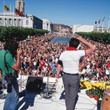In 1975, Milk campaigned for supervisor again and lost. The following year, Mayor George Moscone (1929–78) appointed him to the Board of Permit Appeals, making Milk the first openly gay city commissioner in the United States. Dubbed “The Mayor of Castro Street,” Milk mobilized the community and helped to register thousands of voters. He partnered with the local Teamsters Union and co-organized a successful boycott of Coors beer for the company’s discriminatory anti-union policies—one of the earliest instances of a gay community realizing its collective power through an economic boycott. Undaunted by his previous defeats, Milk ran for supervisor a third time and won, making him the first openly gay elected official in California. Milk’s watershed 1977 victory made national and international headlines and served as a triumphant milestone for the LGBTQ community. Milk used his platform to encourage others to come out of the closet as a critical first step toward achieving their rights.