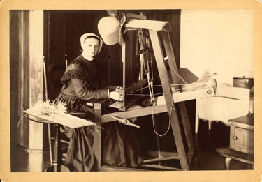 Sister Bertha Mansfield at her loom c. 1870s–1880s