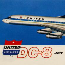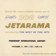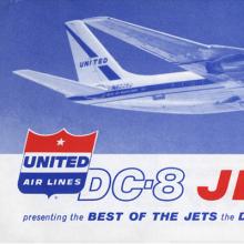 Introduced in 1959, the Douglas DC-8 was United Air Lines’ first jet airliner and the second American jetliner to be launched into service after Boeing’s 707. Branded the “Jet Mainliner” by United, it was a major advancement in airliner design and officially launched the airline into the jet age. It was larger than United’s previous airliner, the piston-powered DC-7, and offered a much smoother, quieter, and faster flight. The long-range, pressurized jetliner was promoted by United as an entirely new experience in air travel. Capable of flying high in the stratosphere, with cabins reminiscent of “living rooms,” the DC-8 offered one of the most comfortable flying experiences available. To help promote the new airliner to the traveling public, United had Pacific Miniatures of Alhambra, California, create several large cutaway models to highlight the DC-8’s new features and amenities, particularly its spacious and luxurious cabin interior. During the aircraft’s introduction in 1959, one of these models appeared in United’s promotional DC-8 movie Jet Mainliner Flight 803 while it was displayed at New York International Airport (now John F. Kennedy International Airport). Another model was exhibited at San Francisco International Airport (SFO) during the same time. The models were also displayed in a tent show produced by United called “Jetarama” that traveled across the country promoting the DC-8.