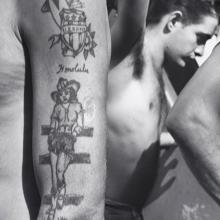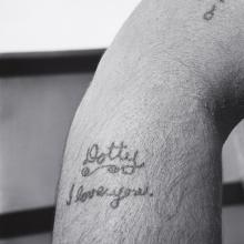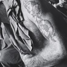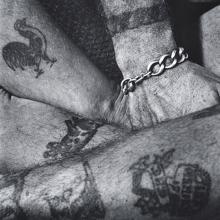 In 1945, aboard a troopship with hundreds of soldiers returning stateside during WWII from CBI, Gutmann captured these tattoo images. Always fascinated with visual language, he was attracted to the simplistic markings, and the love-tokens the returning soldiers displayed on their arms, legs, and chests. John Gutmann: Tattoos unites his analytic examination of everyday life and sub-cultures with his notion of using photography as a documentary as well as an aesthetic medium.