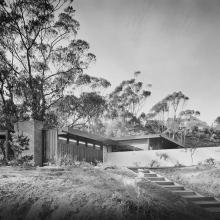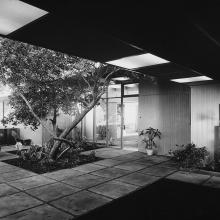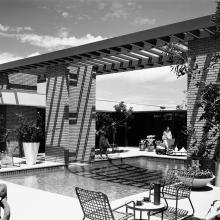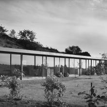 The artist responsible for documenting these homes was Julius Shulman (1910–2009). A longtime resident of Southern California, Shulman began a career in architectural photography in 1936 when asked by an acquaintance working for Richard Neutra to photograph the architect’s recently completed Kun Residence. His visual interpretation of space struck a chord with Neutra, who hired him to document each of his projects. Shulman’s career quickly escalated, and by the mid-1950s he had become widely recognized as one of the nation’s foremost photographers of architecture. Much of his early success can be attributed to his dynamic images of the Case Study Houses. During the program’s active years, Shulman worked on assignment for the magazine and in collaboration with contributing architects to photograph the majority of the prototype homes. Vivid and persuasive, his photographs capture the essence of each home, rendering the steel and glass structures as inviting and attractive places for modern living.