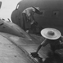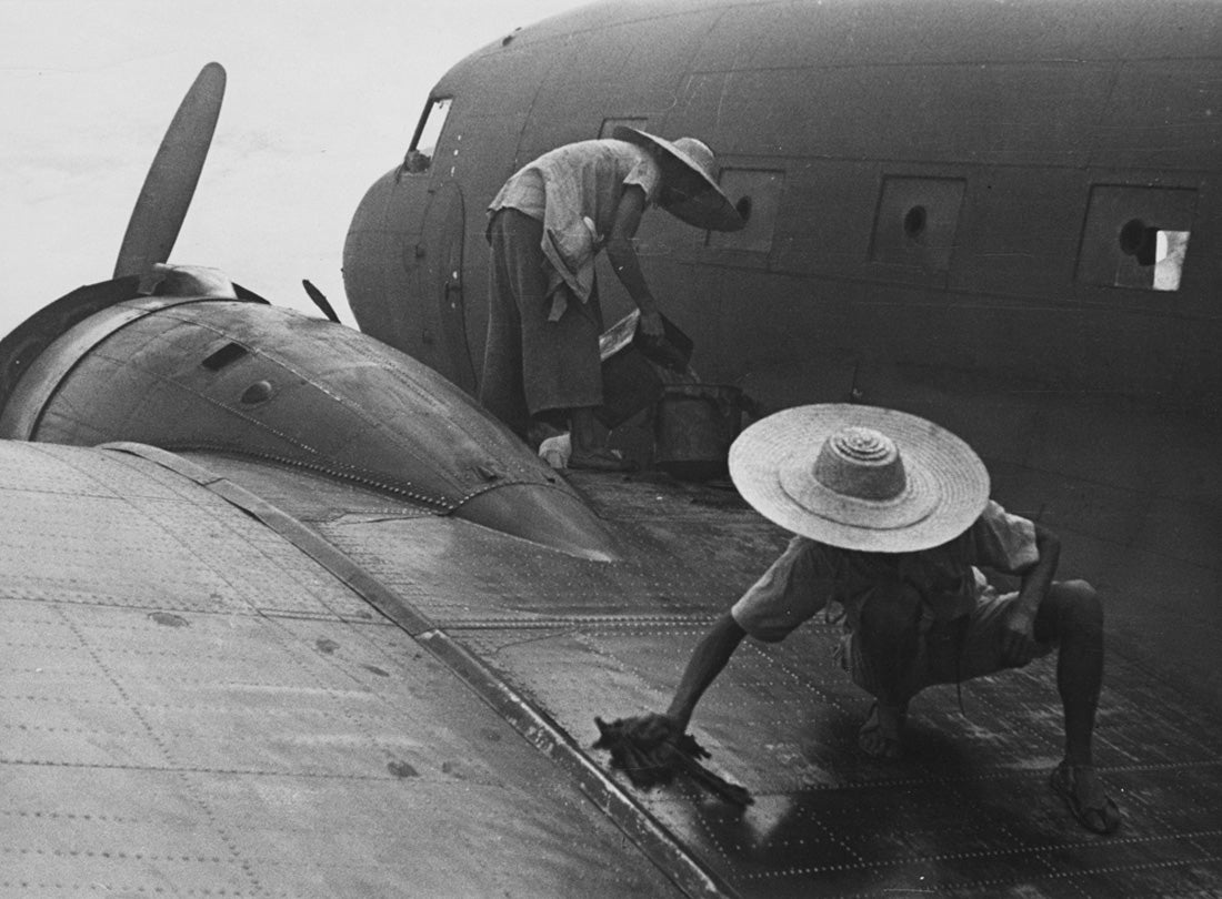CNAC ground crew fueling Douglas C-47 (DC-3), Suifu 1944