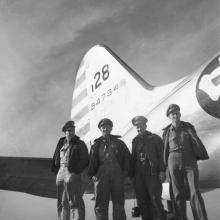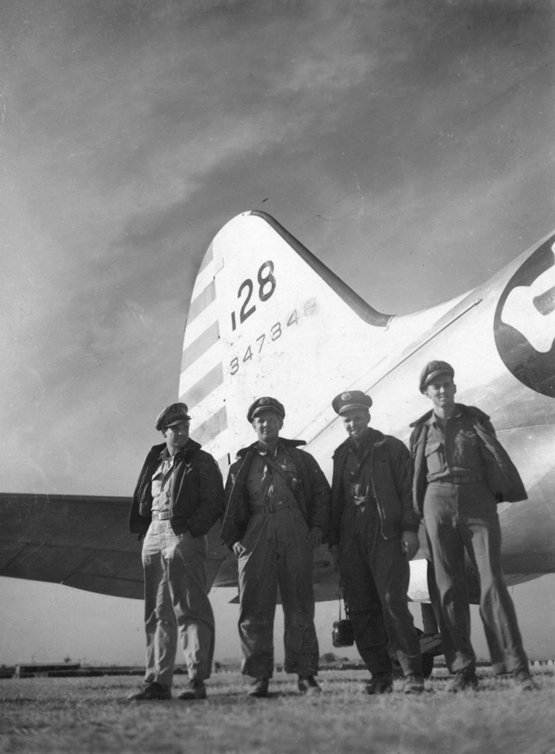 (from left) CNAC Captains Donald E. Bussart, Leon F. Roberts, Robert E. Rengo, and Carey E. Bowles c. 1945
