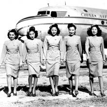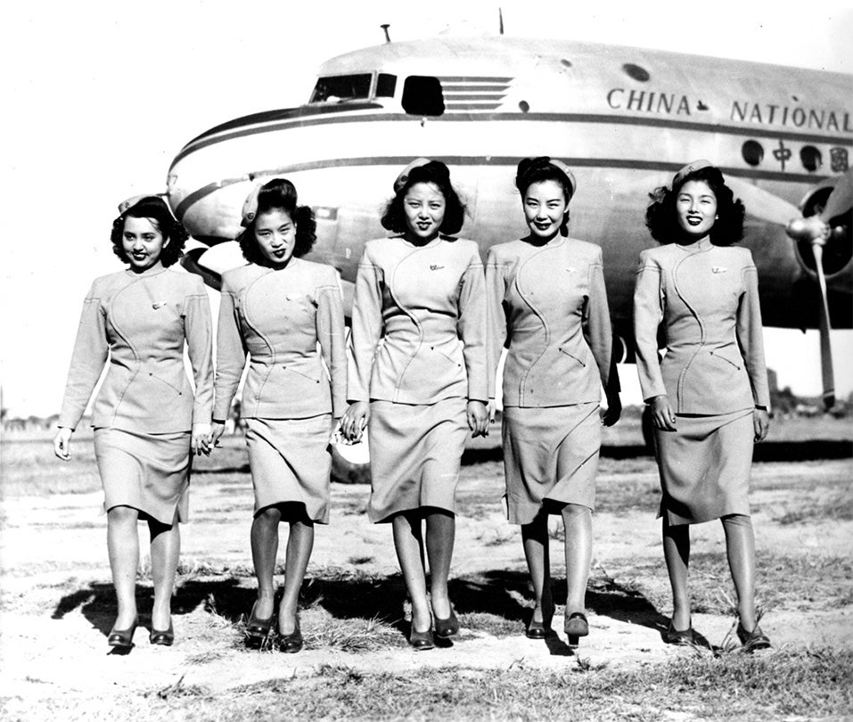 CNAC Air Hostesses and Douglas DC-4 Skymaster c. 1948