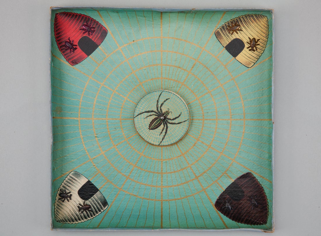 Although the game play has nothing to do with prizefighting, the game maker depicted an image of a spider and a bee boxing on the cover of this game due to the popularity of the ringside sport at the time of the game’s manufacture. In this game, the bees moving from the hives attempt to travel around the web without being caught by the spinning spider. The player whose bee first travels completely around the web and arrives back in his hive wins the game.
