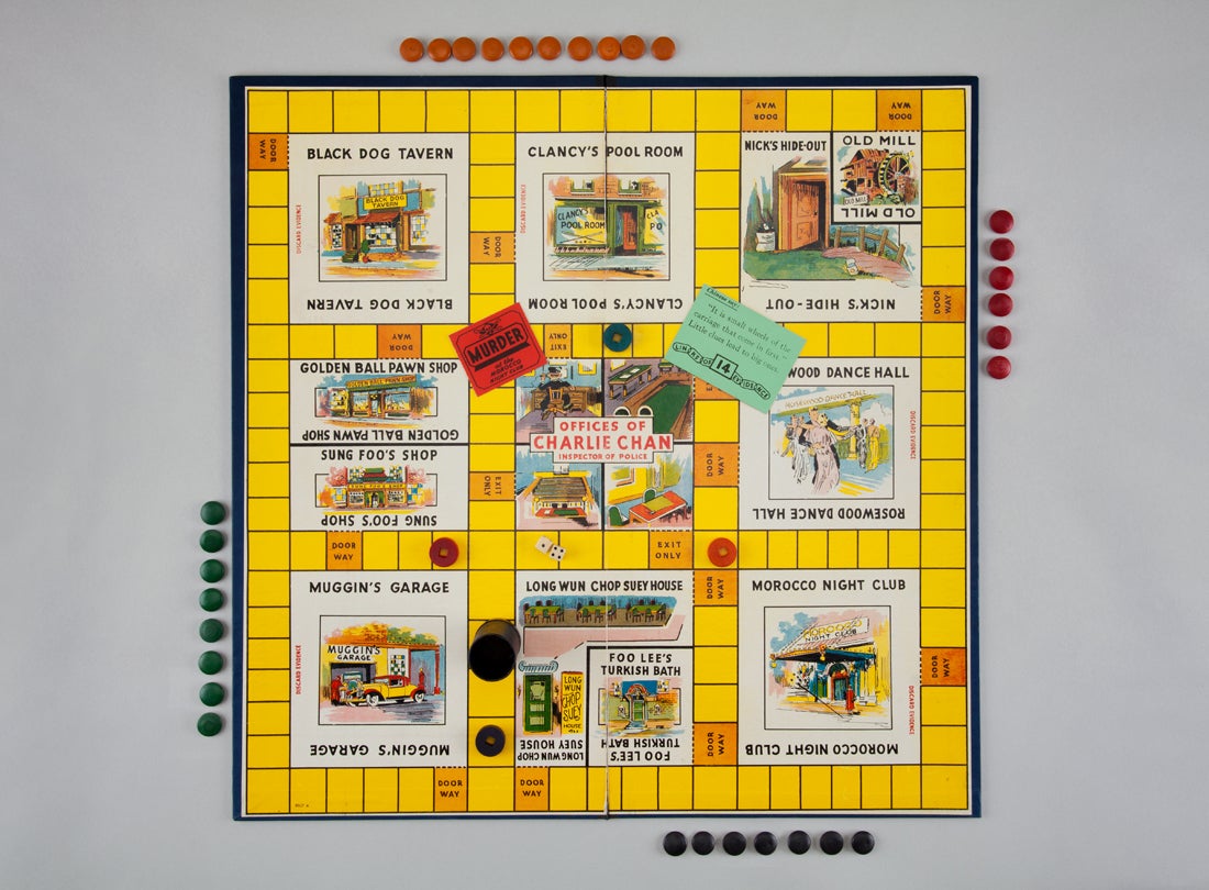 Charlie Chan, the famous Chinese detective came to life on the pages of six popular novels beginning in 1926. The character, created by Earl Derr Biggers, was loosely based on the Honolulu detective Chang Apana. Charlie Chan was also featured in approximately nearly fifty Hollywood movies. Due to the social climate of the era, Caucasian actors played Chan in the American films. Milton Bradley offered this board game at the height of Charlie Chan’s popularity. Players move from one point to another as directed by the “go” cards. When one player accumulates exactly one hundred links of evidence, they stand revealed as Charlie Chan: The Great Detective, announcing their score and winning the game.