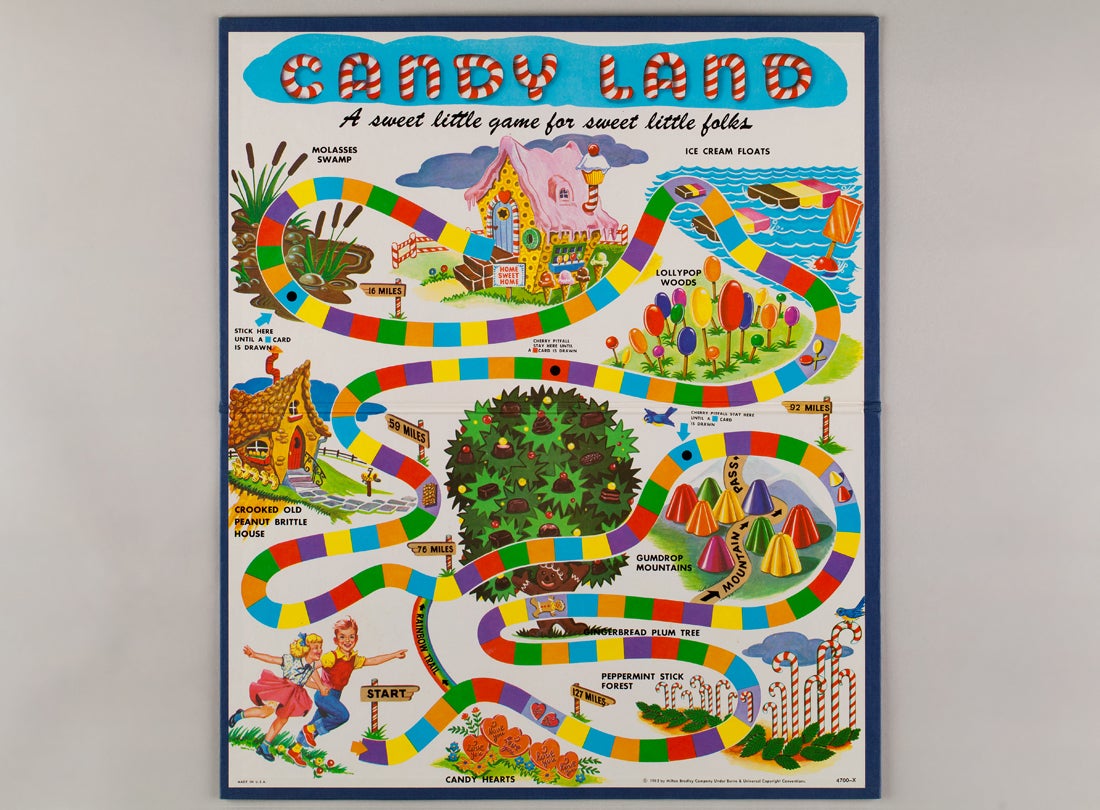 While recuperating from polio, Eleanor Abbott invented the game Candy Land in 1945. She envisioned the game for polio-stricken children to play as they recovered. The game required no reading or mathematical skills so young children could easily play it. Players simply draw a color card or a sweet and advance to that square on the board.