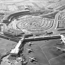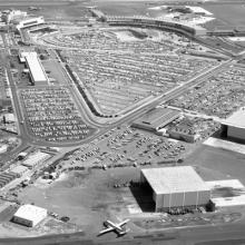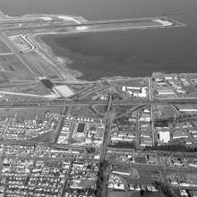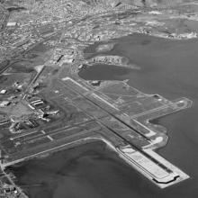 Today, SFO Museum holds approximately 750 photographic negatives made by Moxom while on assignment at the Airport. A formally trained photographer, Moxom’s images are marked by an outstanding level of craftsmanship and careful composition. They exhibit a sense of artistry not commonly seen in works by editorial photographers of the era. Presented here are aerial photographs made by Moxom between 1958 and 1964 that depict the Airport and surrounding landscape of the San Francisco Peninsula.