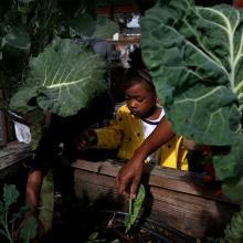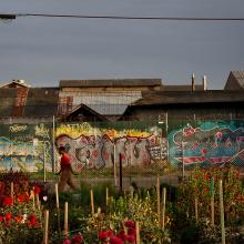 Today, food insecurity remains a concern in West Oakland, with nearly a third of its residents living below the poverty line and without easy access to nutritious food. In an effort to fill this need, new groups, greatly influenced by the BPP’s food access initiative, have formed to provide easier access to healthy, affordable food for local residents. Among the East Bay community-run services focusing on food justice are many urban agriculture projects. In her project, The Farms of West Oakland, Oakland-based documentary photographer Preston Gannaway draws focus on these efforts, surveying the diverse range of approaches to and intersections between urban farming and community outreach in West Oakland.