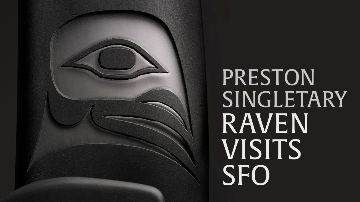 Preston Singletary: Raven Visits SFO features examples of his recent work, some of it on view for the first time. The project is from a series of new exhibitions that incorporate narrative text by Garth Stein (b. 1964), a New York Times bestselling author who is also of Tlingit ancestry. Singletary views their unique collaboration as “a new direction in my own work: imagining the stories of what Raven is up to these days.” Pointing to a disturbance in Native cultures after thousands of years, Singletary states, “I have long wondered when Raven’s next story might be entered into the annals of Tlingit history. Did Raven just stop doing things, or is he perhaps some kind of spirit around us who is trying to affect changes, knowingly or unknowingly?”