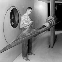 This exhibition presents a collection of NASA photographs on four main themes within the history of Ames wind tunnel research: wind tunnel testing between 1948 and 1971; the full-scale testing of the first American SST (supersonic transport) designs in the 1960s; supersonic wind tunnel testing during the 1940s; and construction of the first Ames wind tunnels during World War II.
