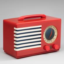 As television took the spotlight in the 1950s, radio programming shifted to recorded music and talk shows. Transistorized portables and auto radios cranked out rock ’n’ roll and Top-40 hit songs, deejays and radio show hosts became overnight stars, and the number of receivers in the United States doubled. Radio had cultivated a massive and mobile audience. This exhibition highlights more than sixty years of radio design, from crystal sets and luxury consoles, to stylish tabletop models and pocket-sized transistors.
