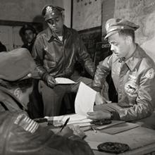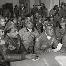 (first row L-R) Hiram E. Mann, unidentified; Newman C. Golden, Bertram W. Wilson, Samuel W. Watts, (second row L-R) Armour G. McDemoe, Howard C. Gamble, Harry T. Steward, Jr., Earle R. Lane, Wyrain T. Shell, Harold M. Morris, John E. Edwards, John H. Porter, James H. Fischer, (third row L-R) William E. Rice, Tony Weaver, Charles L. White, George Arnold Lynch, Samuel L. Washington, Calvin J. Spann, Frank N. Wright