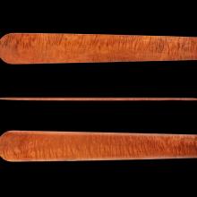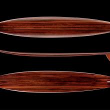 Surfboard shapers are artisans who create surfboards from shaping materials such as foam or wood. By pairing iconic surfboard shapers with select sources of rare wood, Larry Fuller (b. 1954) has assembled a collection of boards that illustrate the progression of surfboard design through a common medium. Fuller crafted his first wooden board from agave and redwood close to three decades ago with surfer-shaper Jim Phillips (b. 1946). Over the next few years, he made connections that established the foundation for a more extensive legacy project. While working for Phillips in Encinitas, California, Fuller was introduced to a host of surfer-shapers including George Downing (1930–2018) and Dick “RB” Brewer (b. 1936). Surfing in his spare time at Cardiff State Beach in San Diego, Fuller was led to surfer-shaper Donald Takayama (1943–2012).