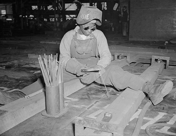 Welder-trainee Josie Lucille Owens helping to construct the Liberty Ship