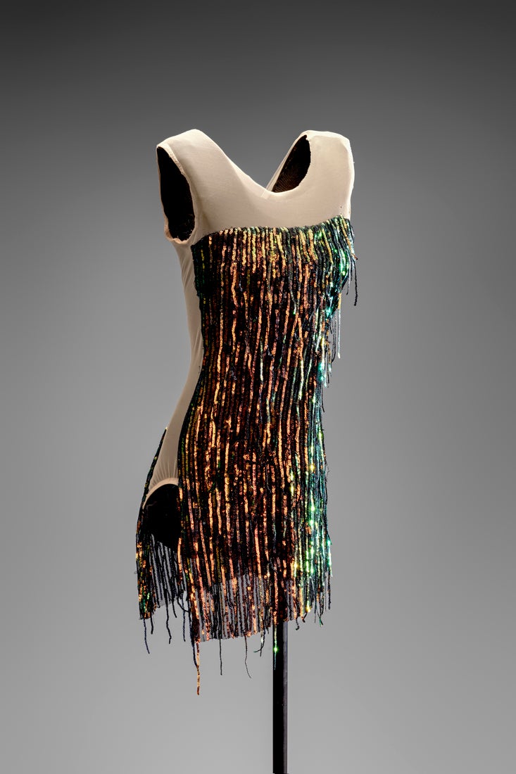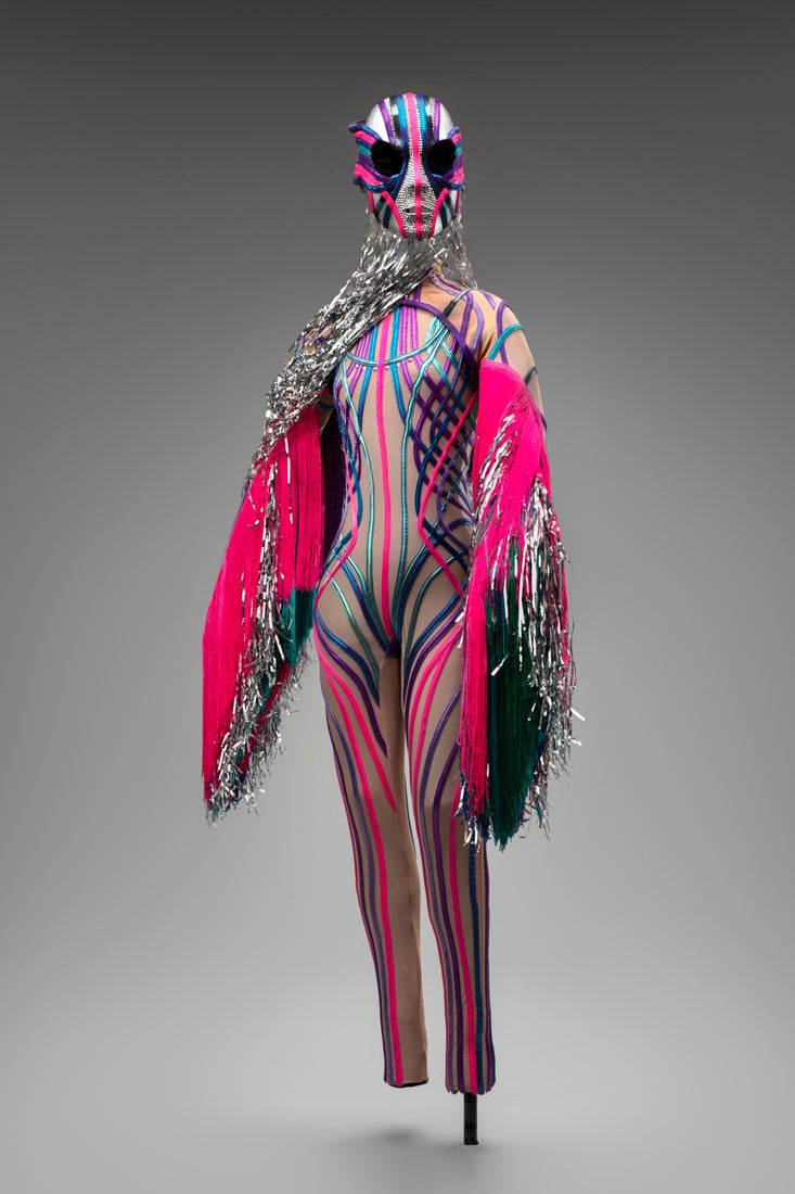 Björk Ballet unitard, fringe bolero, and mask with fringe 2018