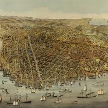 All objects and images on exhibition are from the David Rumsey Map Collection unless otherwise noted. Special thanks to Stanford University Libraries' Digital and Rare Maps Librarian G. Salim Mohammed and City Archivist Susan Goldstein of the San Francisco Public Library for their generous assistance with this exhibition.