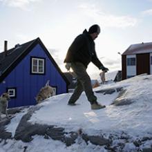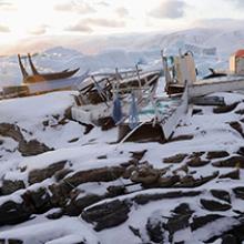 In his essay, Shadows of Change, late photographer and photojournalist Stanley Greene visits the town of Uummannaq in central-western Greenland and draws focus on the effects of climate change in the region. In Uummannaq, Inuit traditions of hunting and fishing have historically revolved around seasonal changes in weather—dog sleds are used to cross the sturdy sea ice during the winter months and boats are used when the ice melts in the summer. With increasingly warmer temperatures in the region, ice is melting earlier in the year and becoming less stable, creating unprecedented periods of time during which the ice is not strong enough to hold dog sleds but also cannot be penetrated by small fishing boats. In a region where cultural traditions and livelihoods are largely dependent on the formation and reliability of seasonal ice, these changes in climate are felt as a change in basic environment and way of life. Greene chronicles these changes in a series of quiet images that portray a landscape and its people in flux, and offer a place for us to meditate on a future where the effects of climate will only become more visible.
