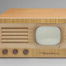 Motorola, a combination of "motor" and "Victrola," was the leading car radio manufacturer in the 1930s. The company diversified into television production with the launch of their attractive Golden View model in blond and gold tones with Bakelite knobs. Priced at a relatively moderate $179, more than 100,000 units were sold by the end of 1948 and the Golden View became one of the most popular 7-inch televisions during the late 1940s. Motorola's portable version was designed like a small suitcase with latched buckles. Leather straps inside the lid originally contained the set's antenna and base.
