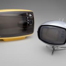 Panasonic's TR-005 was marketed as The Orbitel, but was popularly known as "The Flying Saucer." This model's 5-inch screen was housed in a pearl grey, spaceship-shaped cabinet that rotated 180 degrees on its chrome tripod. It included an earphone jack and two built-in telescoping antennas for pulling in signals on its transistorized receiver, which featured an "Electro-Tuner" for switching from VHF to UHF with one control.
